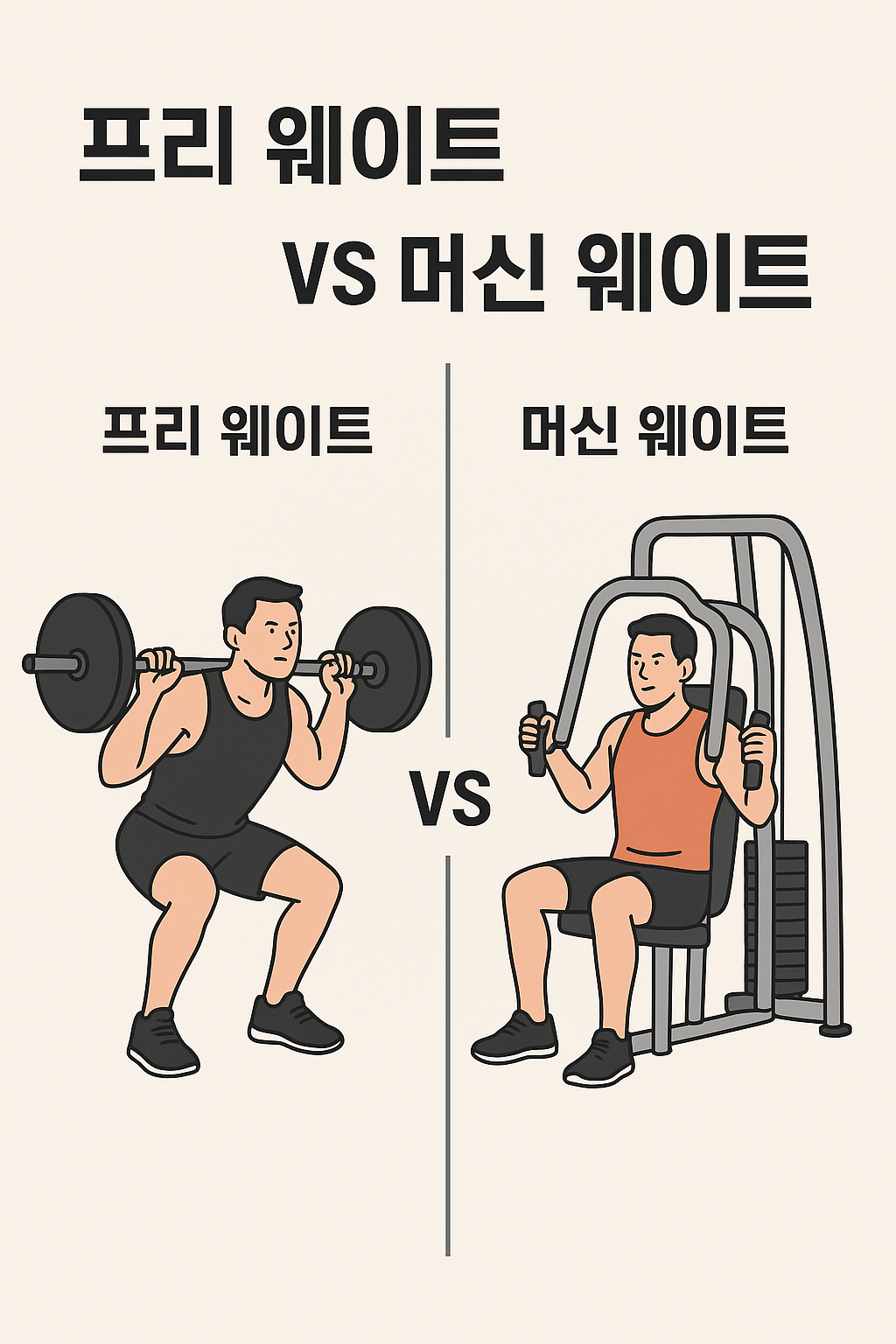 프리 웨이트는 다관절 운동과 전신 협응력 향상에 강점이 있고, 머신 웨이트는 안전성과 특정 부위 집중 발달에 유리합니다.