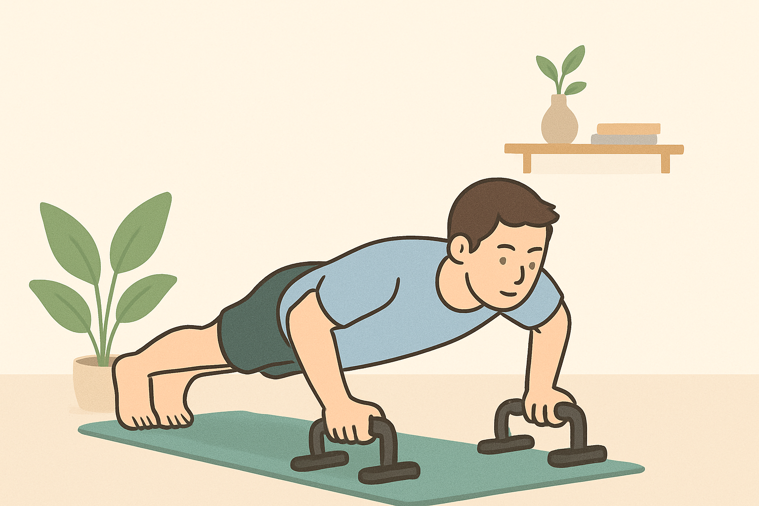 푸쉬업 바는 손목 부담을 줄여주고 가슴, 삼두근, 어깨 자극을 극대화합니다. 특히 집에서 상체 근력 강화에 매우 효과적입니다.