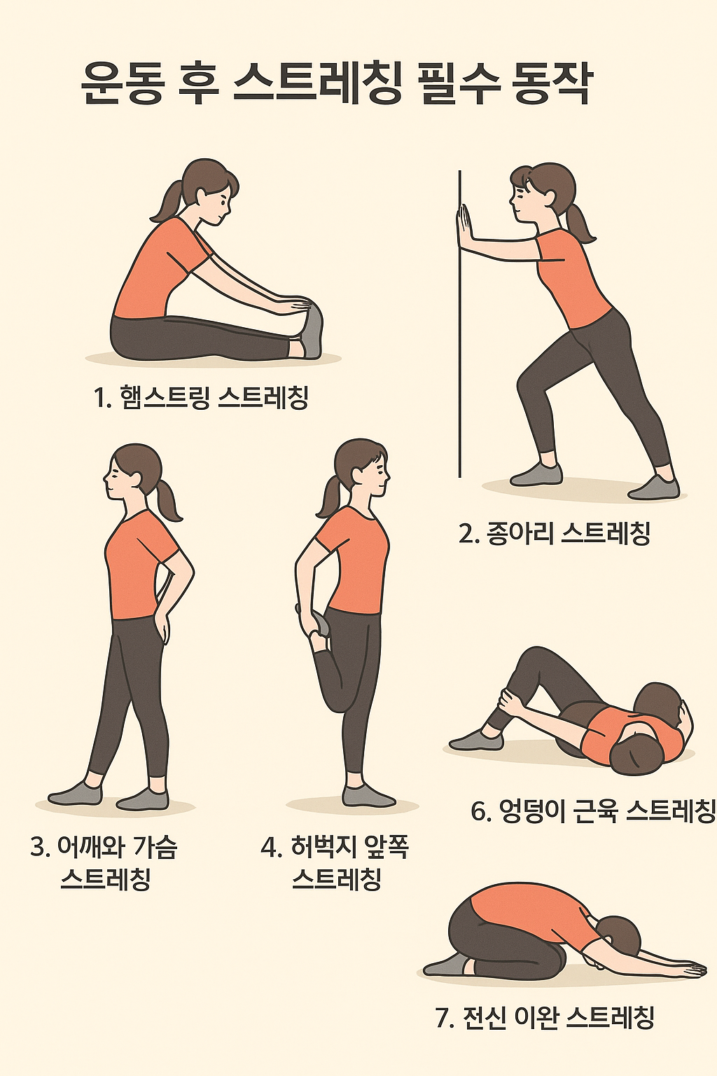 이렇게 ‘운동 후 스트레칭 필수 동작 7가지’를 습관화하면 운동 효과는 더욱 극대화되고, 부상 없는 건강한 운동 생활을 이어갈 수 있습니다.